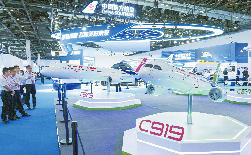 5月26日,参观者在第三届民航科教创新成果展的中国商飞展区参观。当日,以“创新领航 智连世界”为主题的第三届民航科教创新成果展在北京国家会议中心开幕。展览展出面积2.2万平方米,由100余家参展单位组成七大特色展区,聚焦教育、科技、人才三大领域,集中展示我国民航自主创新技术和国产民机、无人机等先进制造技术成果。新华社记者 鞠焕宗 摄