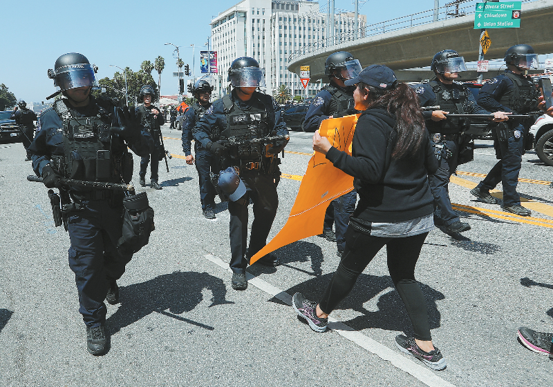 橡皮子弹与催泪弹齐飞,刺耳警笛与高声怒骂交织。洛杉矶警方和美国国民警卫队8日与抗议民众在洛杉矶发生激烈冲突,让人称“天使之城”的美国第二大城市的市中心陷入混乱。一名媒体同行在冲突现场问记者:这场景像不像在中东战乱地区?