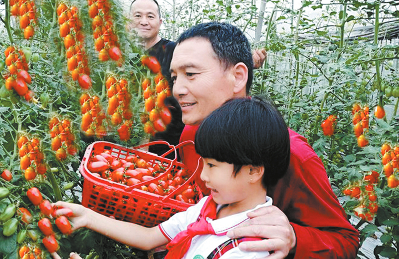 近日,来自连城县城的游客在朋口镇金龙村大杰家庭农场采摘红玛瑙似的“台湾玉女小番茄”。农场主邱大杰介绍,农场种植的16亩玉女小番茄因皮薄多汁爽口鲜甜,刚刚开摘便引得游客纷至沓来。通讯员 邹善水 摄