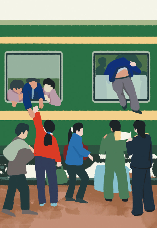 绿皮火车与我有着剪不断的情缘、诉不尽的衷肠,和它们发生的故事,一车皮都装不下,几趟列车也载不完。我曾爬过列车车窗,甚至被大人从窗口塞进车厢,车厢过道、连接处,处处人挤人,可那时没人在乎有没有座位。没钱乘车就搭货运列车,在最后一节跟押车员说好话,免费搭车全程站立,虽辛苦却能饱览沿途风景。在列车上也遇到过小偷,稍不留神,钱物不翼而飞。工作后,我还曾与列车员萌生出懵懂情感,一起在厦门海滩逐浪的浪漫时光,如疾驰的列车般一闪而过,留下一段美好的青春回忆;也曾为了售卖自家种植的葡萄、梨子等水果,在月台趁着绿皮火车停站的几分钟,在各个车窗前快速移动叫卖,运气好能卖出几单,就开心不已。