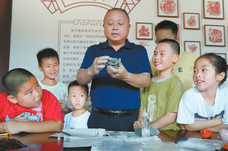 武平县手工捏陶老师钟元康现场教小朋友制作陶器。