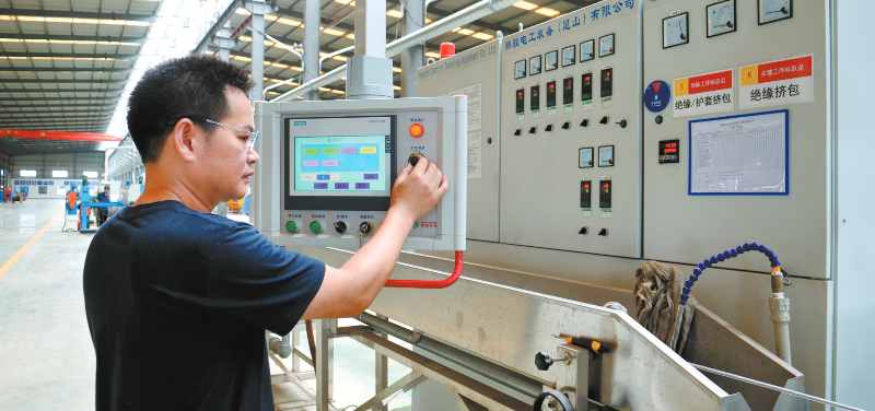 昨日,福建欣意合金电缆科技有限公司工人正在进行生产。该稀土铝合金中低压电力电缆的成功重组是长汀盘活低效用地和闲置厂房的一个缩影。目前,项目两条生产线已进入试生产,达产后预计将实现年产值约5亿元、创税900万元。通讯员 陈炳林 谢家进 摄
