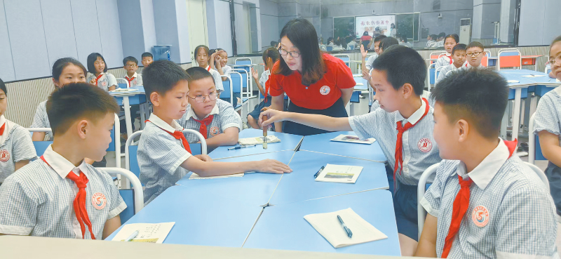 在五年级的课堂上,科学老师谢露露正带领学生体验中医诊疗方法。“同学们,手指虎口处的这个穴位叫合谷穴,小腿外侧的是足三里穴......”谢露露一边讲解,一边示范用艾柱熏蒸穴位。学生唐思泽兴奋地分享:“我刚才体验了拔罐,感觉很神奇,原来拔罐能让人放松,还能治疗肩膀痛。这让我感受到中医药文化的博大精深。”