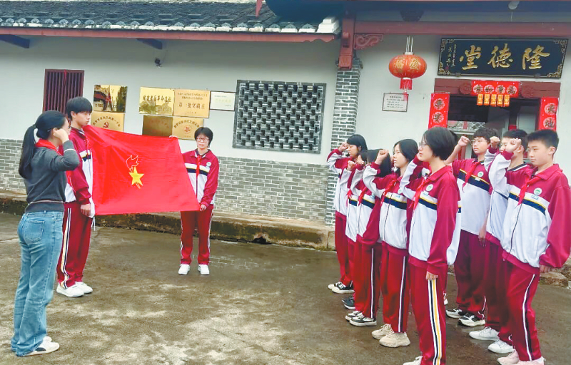 龙岩学院附属中学七年级学生在隆德堂重温少先队入队誓词
