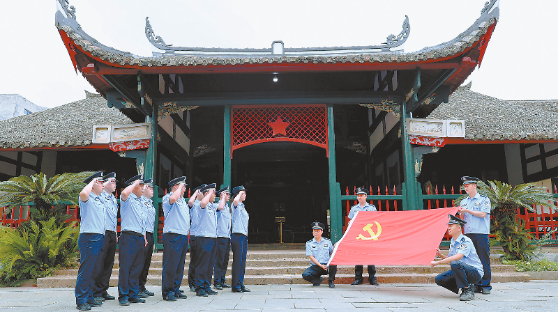 武平县71名新党员统一着装,在梁山书院、刘亚楼将军故居、县档案馆爱国主义展厅庄严宣誓。活动分业践行使命:国网供电公司在企业文化展厅强化服务担当;国资委党委赴梁山书院传承红色基因;公安局在忠诚园筑牢忠诚警魂,合力推进武平老区苏区高质量发展示范区建设。