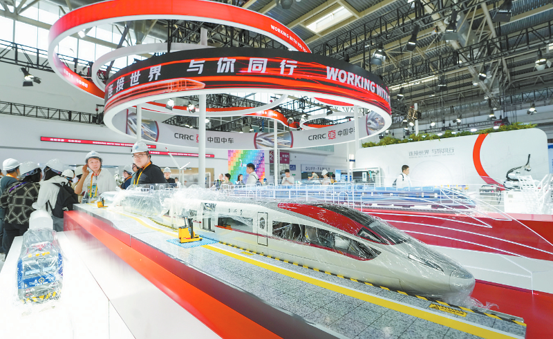 7月14日在第三届中国国际供应链促进博览会先进制造链展区拍摄的中国中车展位。以“链接世界、共创未来”为主题的第三届中国国际供应链促进博览会将于7月16日至20日在北京中国国际展览中心顺义馆举行。本届链博会共设置先进制造链、智能汽车链、绿色农业链、清洁能源链、数字科技链、健康生活链六大链条和一个供应链服务展区。新华社记者 鞠焕宗 摄