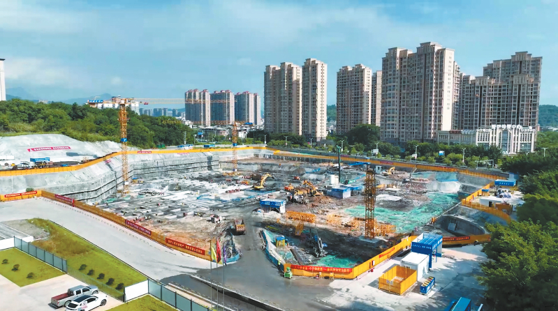 基础检测(载荷板试验、试验桩、试验抗浮锚杆)已完成,抗浮锚杆完成75.1%,基础开挖已完成86.6%,桩基工程已完成34.0%,垫层已完成18.5%。