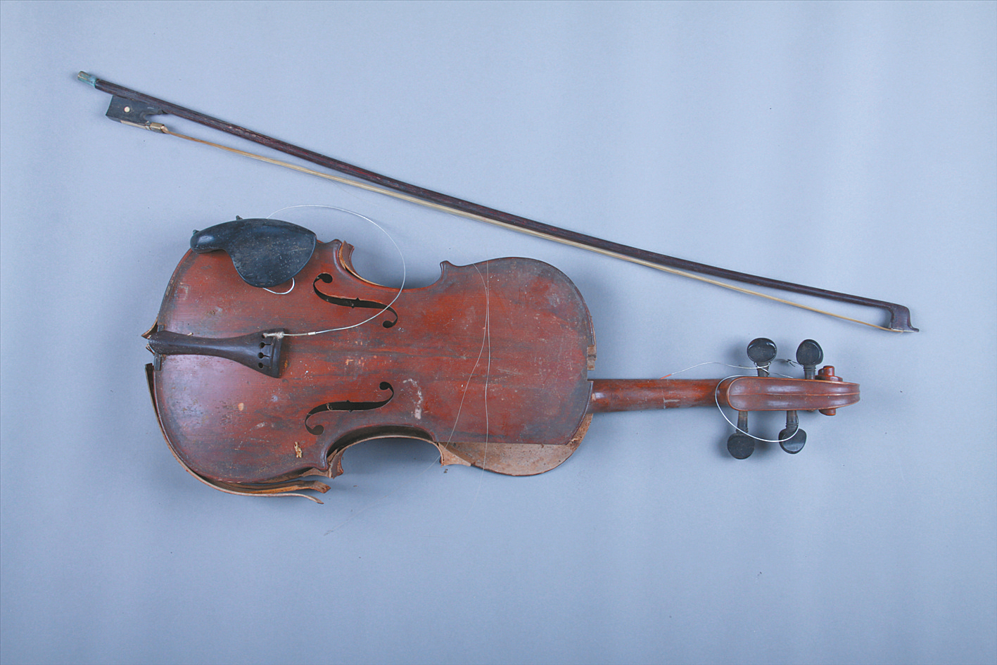 抗日战争时期永定抗日巡回剧团用的手提琴。