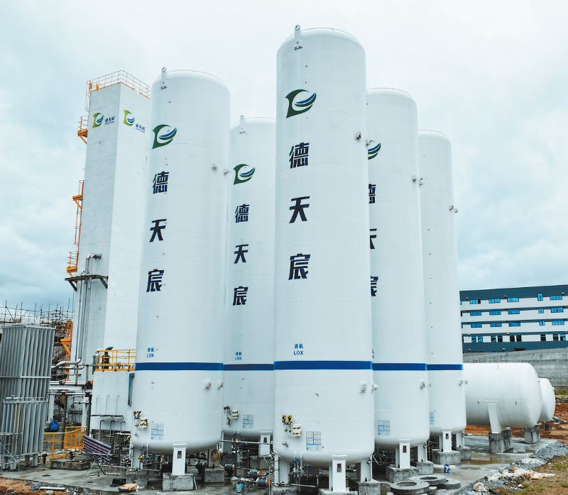 “目前,项目一期冷箱及储罐已全部吊装就位,主厂房外立面翻新已基本完成。稀有气体车间设备间已净空、冲洗、地坪固化完毕。”项目负责人郭海辉介绍,施工单位正全力抢抓项目施工进度,力争在今年第三季度具备试生产条件。