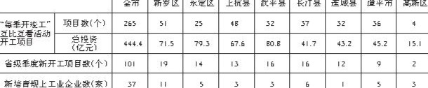 1-6月,全市参加“每季开竣工”互比互看活动开工项目265个,总投资444.4亿元。新培育规上工业企业数37家。