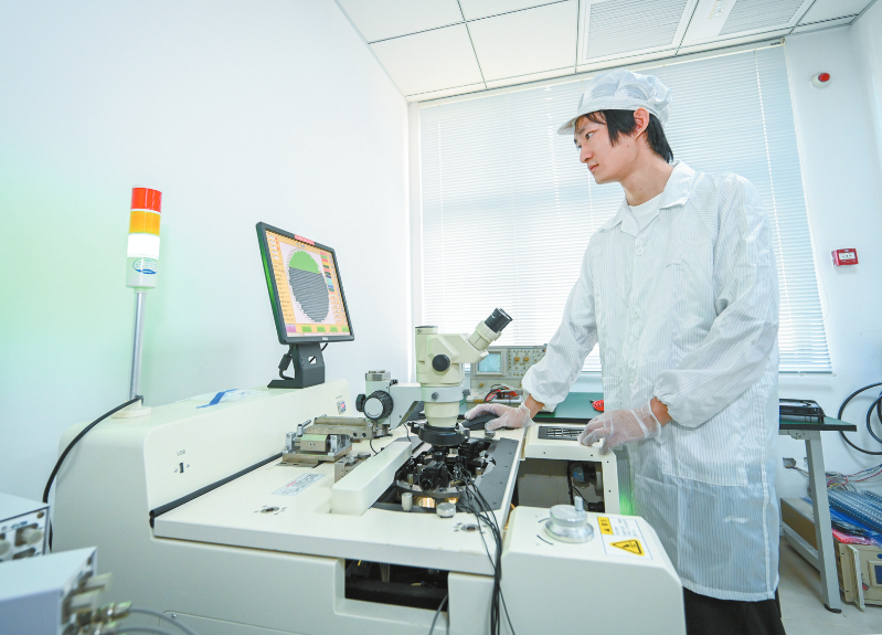 龙夏电子工程师进行晶圆参数测试。龙媒体记者 方晨颖 摄