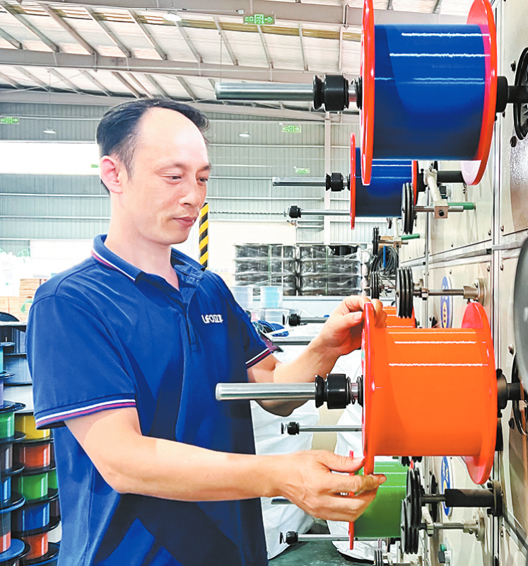 昨日,在永定工业园南部园区的立孚5G(福建)光电集团生产车间内,工人在光缆生产线上忙着赶制订单。据了解,该企业拥有多套国内一流的生产设备和国际先进的检测设备,专业从事高品质光缆及网线的研发、制造及品牌运营。今年,该企业有针对性地开发高密度光纤配线架、防鼠光缆等新产品,年产值有望突破亿元。 通讯员 熊川 摄