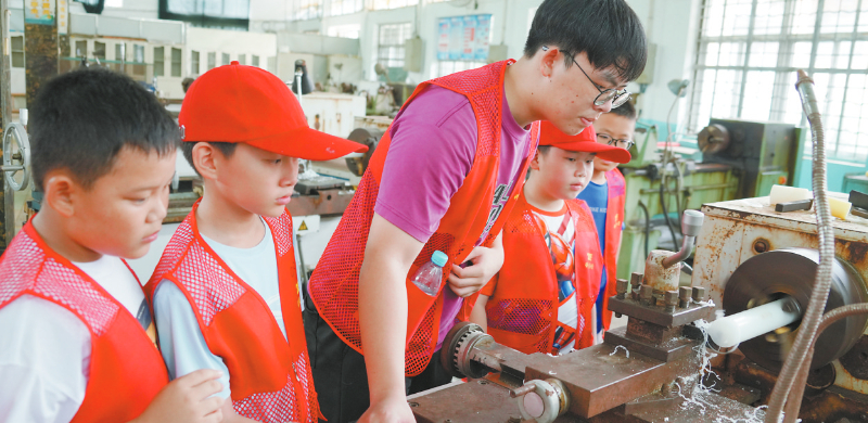 七天时间,科技探索与红色传承的旋律交织共鸣。在五轴加工中心旁,漳平市实验小学学生黄陈义凯看着精密零件在编程指令下逐渐成形,恍然大悟:“原来数控机床是靠‘代码’工作的!”他和伙伴们动手组装循迹智能小车时,时而为传感器原理争论不休,时而为成功调试欢呼雀跃。武平县第一实验小学的刘安琪起初带着抵触情绪而来,却在3D打印课上彻底改观:“当‘红军小模型’从机器里‘长’出来时,突然懂了老师说的‘传承’是什么意思。”