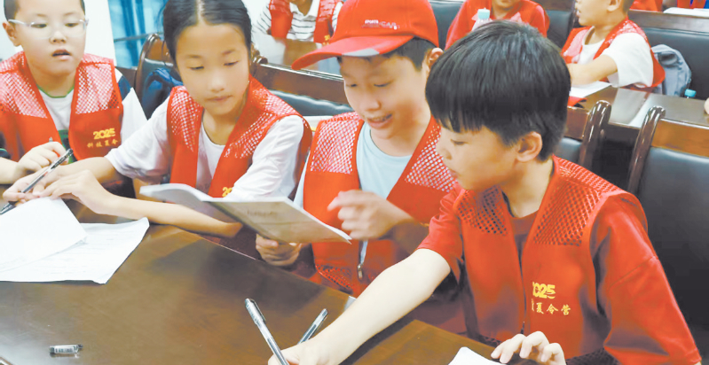 作为首次参加夏令营的“萌新”,刘恒宇从开营前就对AI、3D打印等课程充满期待。“妈妈说这是让我‘沉浸式学科学’,来了才发现,比想象中更有意思!”他翻着自己的营期笔记,里面画满了机器人草图、编程流程图,还有听红色故事时记下的要点,“老师说,当年革命前辈用土办法造武器,和我们现在动手搞发明一样需要勇气,我也要把知识当成自己的‘武器’。”