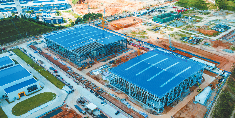 “目前,联合车间主体钢结构、墙面及屋面檩条安装均已完成,整体外观初现。辅房装修工程完成75%,内部装修工作正在有条不紊地进行。”紫金锂元材料科技有限公司碳酸锂厂厂长赖寿华表示,原料车间、成品库厂房结构桩基及罐区基础施工已完成90%,在设备安装方面,窑炉、离心机及碳化热解塔罐主体吊装作业已顺利完成,工艺管道施工也已完成20%,车间内行吊已安装就位,设备安装工作正在按计划推进,为项目的顺利投产提供有力保障。