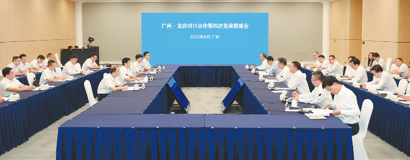本报广州19日电(龙媒体记者 王占鑫)8月19日,广州·龙岩对口合作第四次党政联席会议在穗召开。广东省委常委、广州市委书记郭永航,龙岩市委书记余红胜讲话。广州市委副书记陈向新主持。广州市委常委、常务副市长陈杰,龙岩市委常委、常务副市长陈厦生分别介绍两市经济社会发展情况和开展对口合作工作情况。