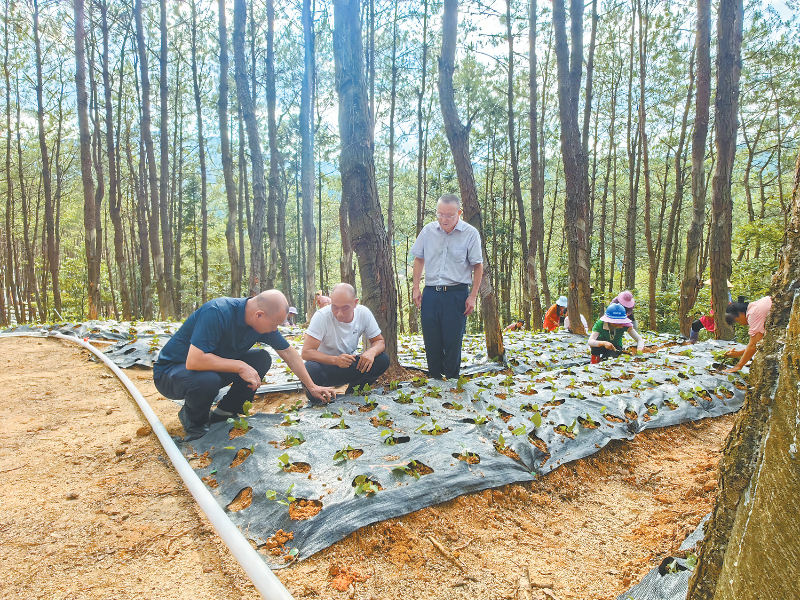 图为武平县西厢社区居民在管护种植的骨碎补苗木。