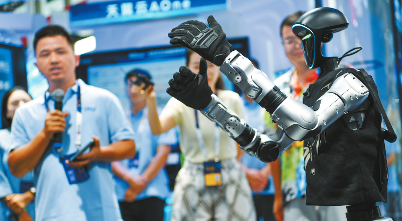 8月28日,中国电信展出的一款机器人在数博会上跳舞。当天,2025中国国际大数据产业博览会在贵州贵阳开幕。本届数博会共举办26场交流活动和34场系列特色活动,展示一批数字经济领域的新技术、新产品、新应用。新华社记者 杨文斌 摄