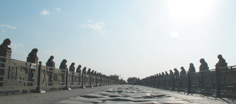 漫步桥面,指尖抚过凹凸的栏板,能触碰到时光的年轮。第七个拱券处留有弹痕,那是1937年7月7日日军炮火留下的印记。石缝间生长的野草年复一年枯荣,将钢铁的灼痕与草木的柔韧编织成岁月的经纬。