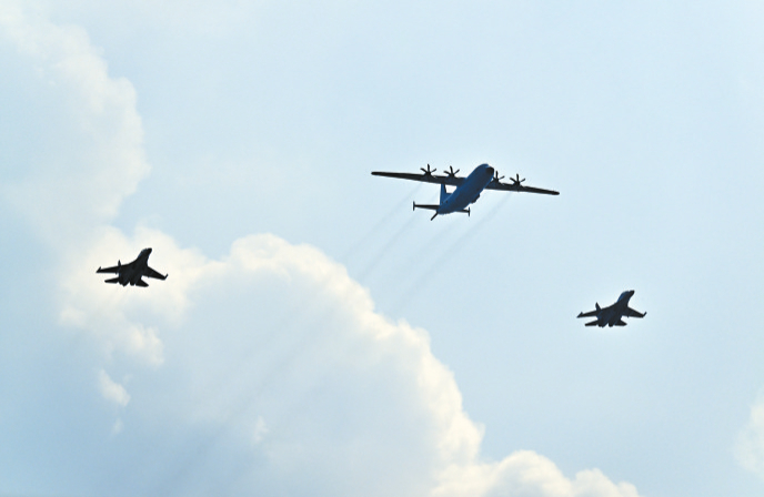 运-9反潜巡逻机、运-9电子侦察机、运-9雷达干扰机作为海军、空军新型特种支援力量首次集体亮相,与6架歼-16战机组成特种机梯队。运-9反潜巡逻机为我国自主研制的新型反潜巡逻飞机,具备多种搜潜手段,是应对和处置海空情况的重要力量;运-9电子侦察机,是我国自主研制的新型侦察机;运-9雷达干扰机,是专精于雷达干扰任务的电子战飞机。