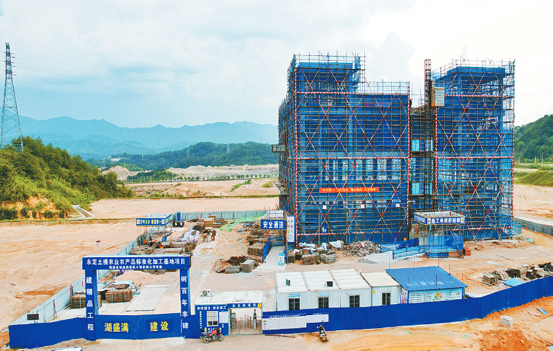 “环园区道路作为园区‘生命线’工程,正按9月底完工目标全速推进,配电房及加工厂房建设亦同步加速,加快推进项目早日投产,带动产业升级、农民增收。”施工单位永定国投集团项目部负责人封祖亮说。