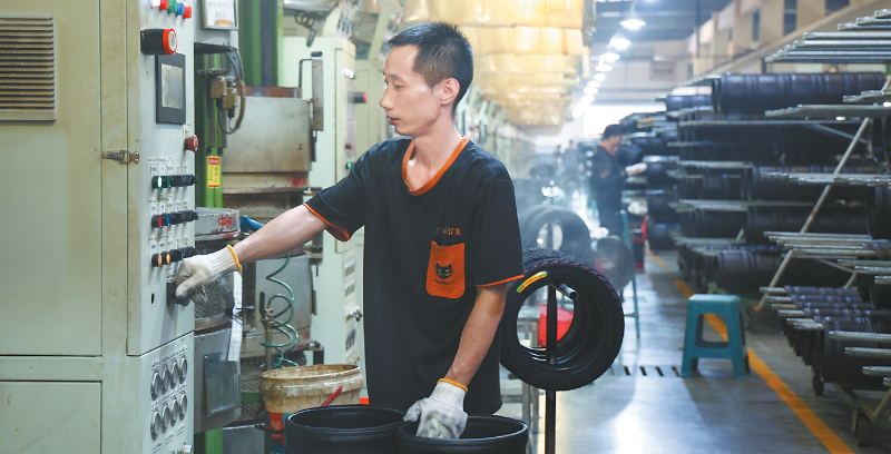 近日,在漳平工业园区黑猫轮胎(福建)有限公司生产车间内,工人正专注进行轮胎压型作业,经过密炼、压出、成型、硫化等工序,一条条轮胎成品源源不断走下生产线。该企业通过技术改造和设备升级,生产效率提升约20%,日产量稳定在4万条,产品畅销国内外市场。