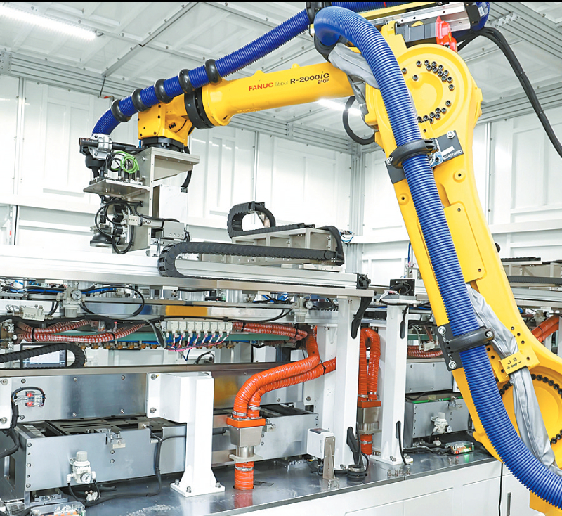 本报讯(通讯员 温连光 文/图)近日,笔者在龙净蜂巢矿山重卡动力电池模组PACK生产线项目车间内看到,机械臂正以0.02毫米精度焊接电芯,AGV小车穿梭运送物料。这条国内首条专为矿山重卡打造的动力电池模组PACK生产线此前已进入试生产阶段。