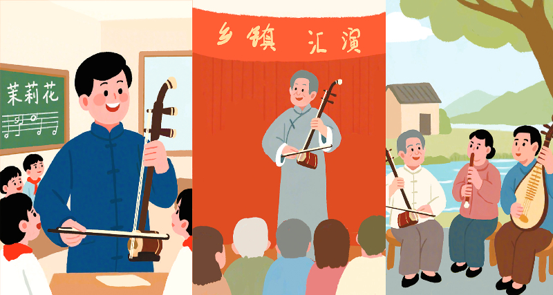 平时,邱老师总喜欢和几个志同道合的音乐爱好者聚在一起。他们有的拉二胡,有的吹笛子,有的弹琵琶,合奏起来就像一场小型的“交响乐”。他们的演奏地点并不固定,有时在村里的小广场,有时在河边的树荫下,甚至有时就在自家的院子里。每当他们演奏时,总会吸引周边村民前来观看。村民们围坐在一起,静静地聆听,脸上洋溢着幸福的笑容。那场景,仿佛是一幅生动的乡村生活画卷。