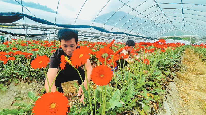 近日,漳平市拱桥镇梧地村村民在鲜切花基地劳作。梧地村以“红色领航·田园花开”党建品牌为引领,发展特色产业,打造带动农户增收致富的“美丽产业”——城郊休闲农业观光区,重点推进鲜切花特色农业产业发展。通讯员 赖韦元 陈巧萍 摄