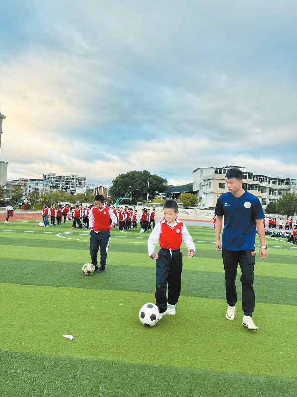 长汀县汀州小学的绿茵场上,星迈足球社团的孩子们在教练的悉心指导下,专注练习足球技巧。