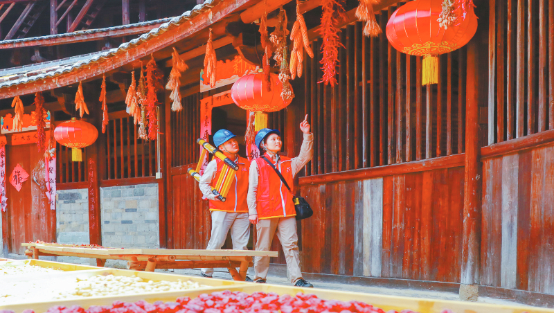 当永定下洋初溪土楼的晒秋场铺满金黄玉米与火红辣椒时,一群“红马甲”穿行其间——他们是国网永定区供电公司的保电先锋。国庆到来之际,该公司通过电网运行监控平台实时监测负荷变化的同时,安排党员服务队轮班值守重点区域,确保国庆、中秋“双节”用电安全,过一个喜庆祥和的节日。通讯员 熊川 摄