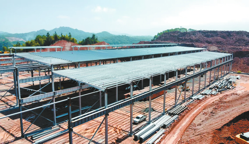 省重点项目新罗亿城装配式新型墙材生产项目进行厂房收尾作业