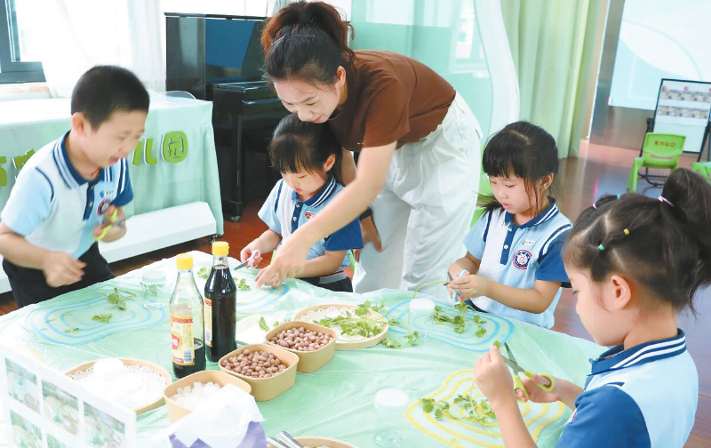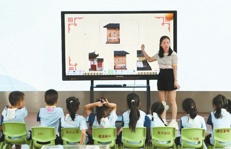 两场聚焦本土的教学预演成为核心实践环节。工作室成员黄英兰执教的大班艺术活动《我是土楼修复师》,以适中土楼短视频为引,引导幼儿化身“修复师”用对称添画补全土楼。“孩子们盯着土楼视频时眼里的光,让我真切感受到家乡文化的吸引力。”黄英兰在采访中说。另一节大班综合活动《花生变变变》立足本土农作物,从认知、品尝到制作花生薄饼等美食,融入本土饮食文化。“看到孩子捧着自制美食分享,就知道这样的本土教学很有温度。”工作室成员执教教师谢彩丽说。