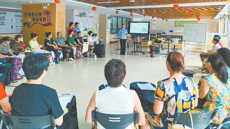 为社区群众上反诈宣传课。