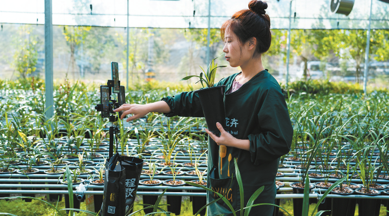 在连城,兰花大棚就是最好的实景直播间,从展示、介绍、下单,到打包发货一气呵成。“从2018年底加入电商直播以来,除春节基本没有中断过,每天能卖出100多盆兰花,最多时日销售额逾3万元。”宏源花卉有限公司负责人邱声华介绍道。