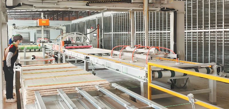 这条生产线采用了先进的自动化控制系统,实现了从原料上料到成型固化的全程自动化作业。与传统的半自动化生产线相比,生产效率提升了约30%,产品一致性也得到显著提高。“目前生产线已完成全部调试,进入试生产阶段。”该项目总经理陈志诚介绍,“我们的核心产品是应用于消防排烟风管的防火板,预计年产300万平方米,年产值可达1.5亿元。”