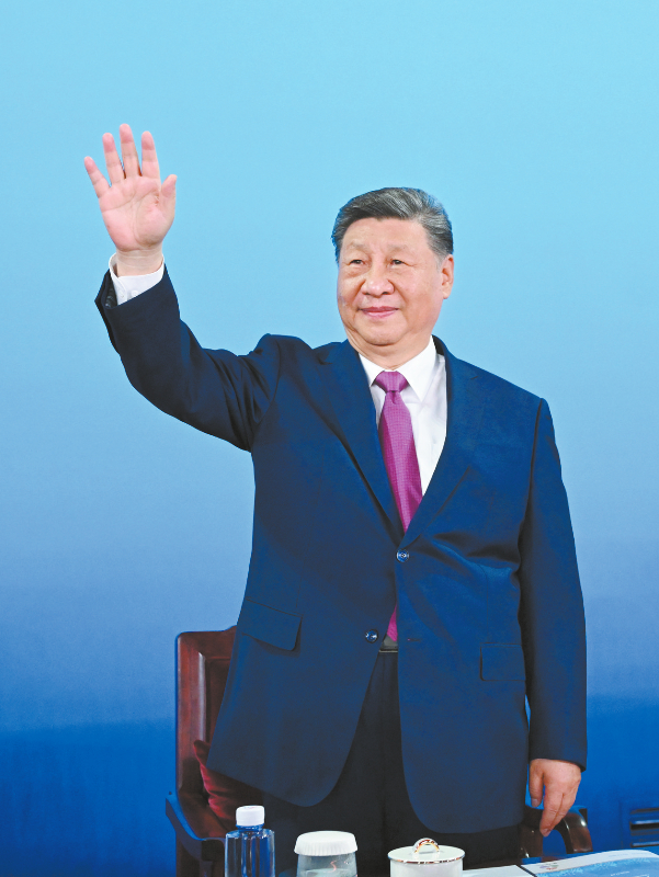 11月9日晚,中共中央总书记、国家主席、中央军委主席习近平在广东省广州市出席中华人民共和国第十五届运动会开幕式并宣布运动会开幕。这是习近平在主席台上向大家挥手致意。 新华社记者 燕雁 摄