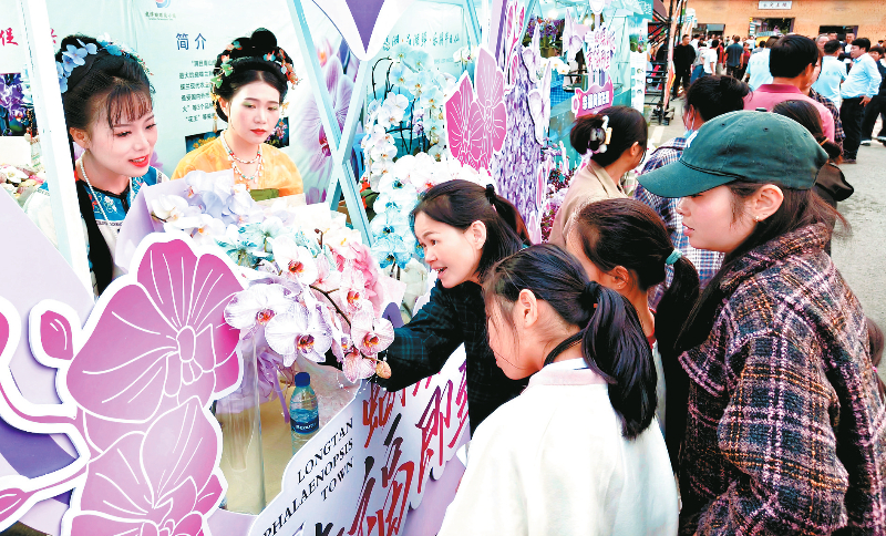 近日,“永定土楼杯”2025年福建省和美乡村篮球大赛(“村BA”)在永定举行。赛场内,球员激战正酣、鼓乐震天;赛场外,永定五大农特产品之一的龙潭蝴蝶兰展区人气飙升,成了游客争相打卡的“网红”点,为这场乡村体育盛宴注入了别样的农产活力与文旅魅力。据展区工作人员介绍,赛事开幕仅仅两小时,就售出了近百盆蝴蝶兰,其中一些小而精致的蝴蝶兰盆栽更是供不应求,成为游客们竞相购买的“香饽饽”。