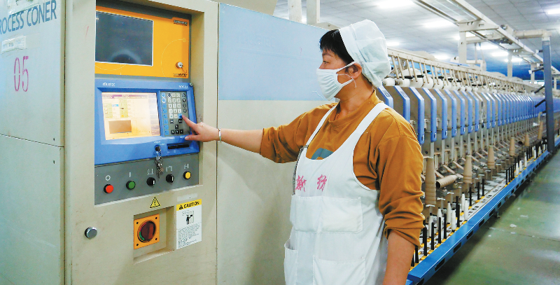 近日,在福建新纺纺织有限公司技改车间,工人正操作机器生产。今年以来,长汀县持续推荐就业人员到该企业上岗,促进技改提质。该县创新就业服务模式,举办招聘活动19场,零工市场、就业“红娘”服务队向重点企业推荐就业3500余人次,为金龙稀土等企业引进“双一流”人才34名。通讯员 陈炳林 刘建秋 沈元兴 摄