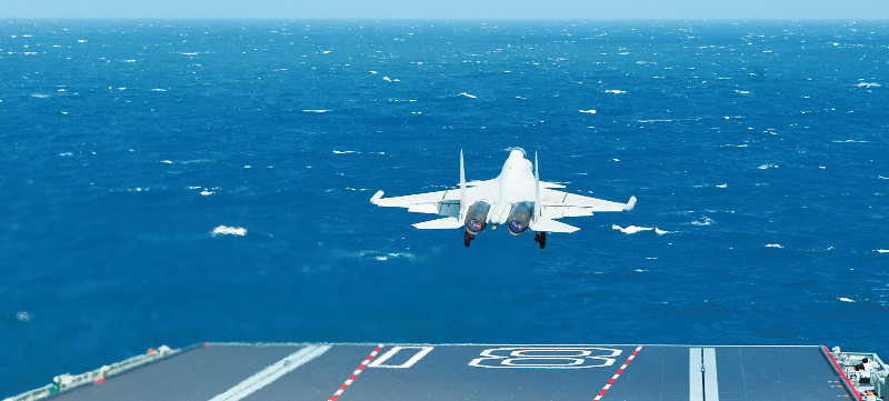 →日前,海军福建舰开展入列后首次海上实兵训练。这是歼-15DT舰载机弹射起飞。新华社发 高泽明 摄