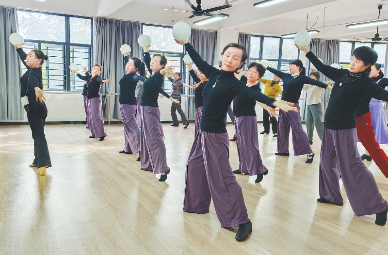 市老年大学紫金山教学点正在开展形体舞蹈课。 余琳虹 摄