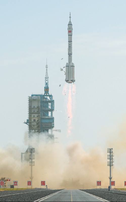 当日的酒泉卫星发射中心载人航天发射场,天气晴朗但伴有大风。“连日来大风天气频发,气象团队精准预判气象风险,为火箭发射方案提供了关键依据。”酒泉卫星发射中心张芳说。