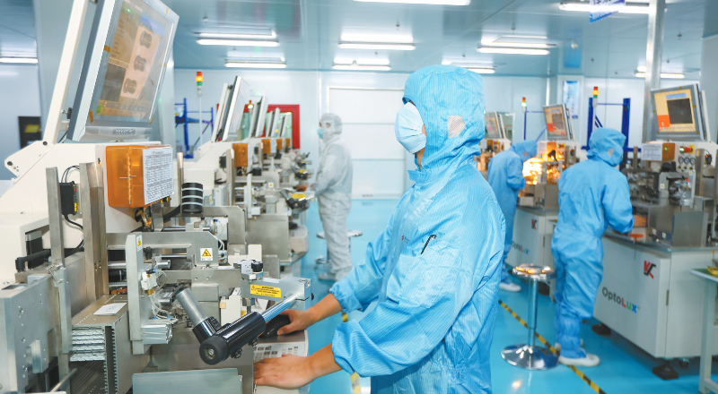 近日,位于上杭工业园区南岗金铜产业园的福建晶旭半导体科技有限公司一期项目车间内,技术人员正在对光电产品进行焊线操作。据了解,该公司是一家拥有独立自主知识产权的,面向5G通信中高频声波滤波器晶圆及芯片材料的高新技术企业。目前公司二期项目——基于氧化镓压电薄膜新材料的高频滤波器芯片生产项目正处于机电安装及精装修阶段,项目建成后将填补国内氧化镓压电薄膜新材料领域的空白。龙媒体记者 谢泽铧 摄