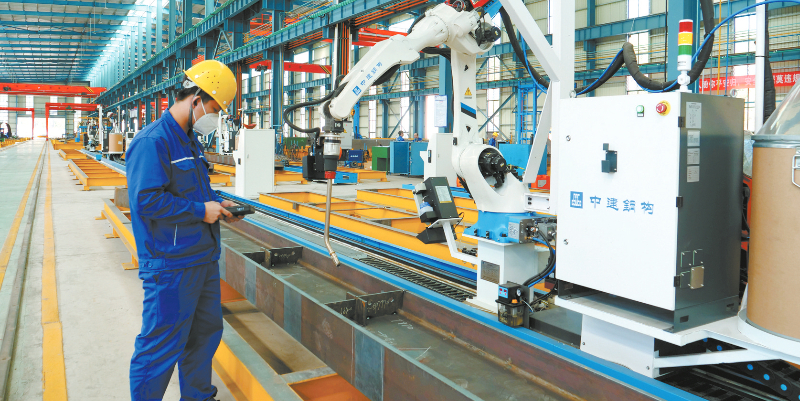 近日,位于长汀绿色建材产业园的福建省鹏远科工有限公司车间内,工人操作机器人进行生产。该园区由中建集团对口支援,规划用地933亩。目前已入驻生产型建材企业共4家,已投产项目3个,在建项目1个,总投资12.2亿元,全部建成达产后年产值可达14.9亿元。通讯员 陈炳林 曾秋林 黄祯 摄