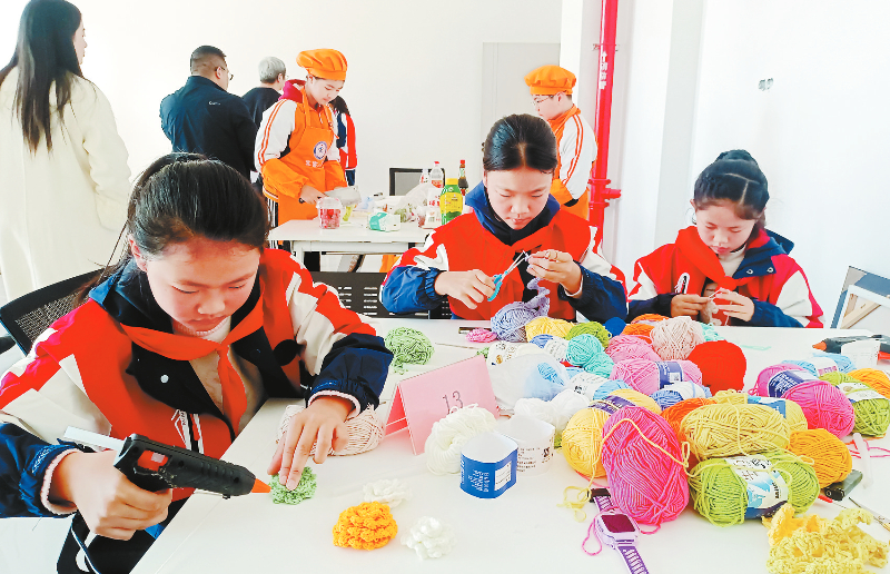 近日,长汀县2025年首届“汀水育劳 筑梦未来”中小学劳动素养大赛在闽西职业技术学院汀州校区举办,赛事分为劳动项目PPT展示和劳动实践操作两个环节,吸引了13支队伍参赛。在客家美食制作区师生们炸灯盏糕、煎薯饼、做鸡肠面,香气四溢;手工绳线编织、木工、刻纸等传统工艺区同样热火朝天,充分展示了师生们的巧手匠心,更体验到劳动带来的成长与喜悦,图为手工绳线编织场景。 通讯员 陈炳林 郑兴英 摄