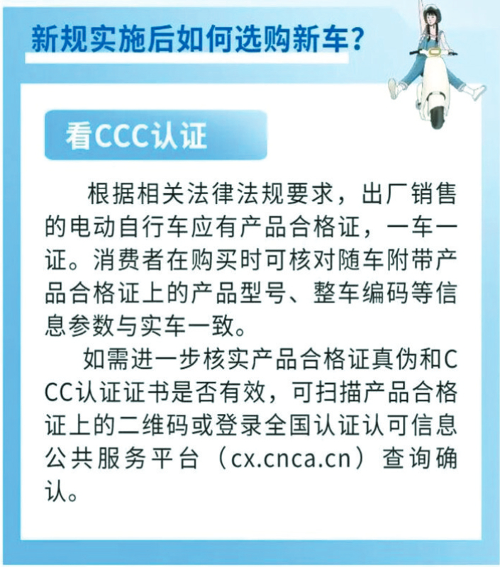 今年12月1日起,《电动自行车安全技术规范》(GB 17761 - 2024)正式落地施行。依据规定,不符合新国标、未取得对应CCC认证的旧国标电动自行车全面禁售。新国标实施后,电动自行车车型有何变化?销售情况怎样?12月2—3日,记者采访部分经销商与消费者了解龙岩中心城区市场销售情况。