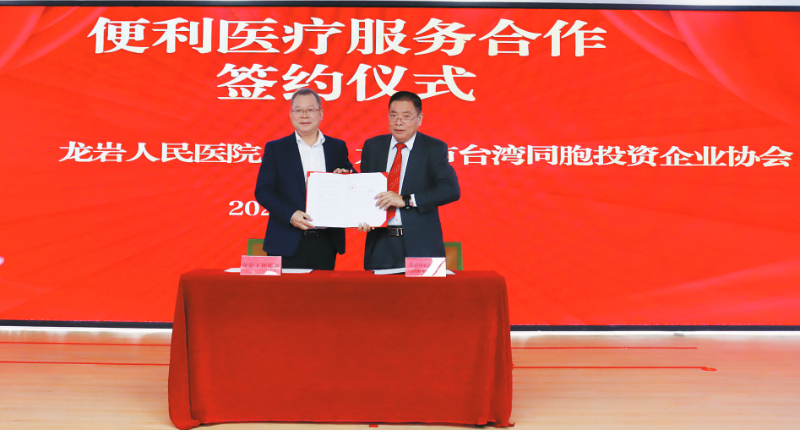 12月2日,在中国人民银行龙岩市分行协调推动下,龙岩人民医院与龙岩市台湾同胞投资企业协会签订便利医疗服务合作备忘录,明确为持有有效“金融信用证书”的台商台胞及其直系亲属提供更加便利的就医服务。