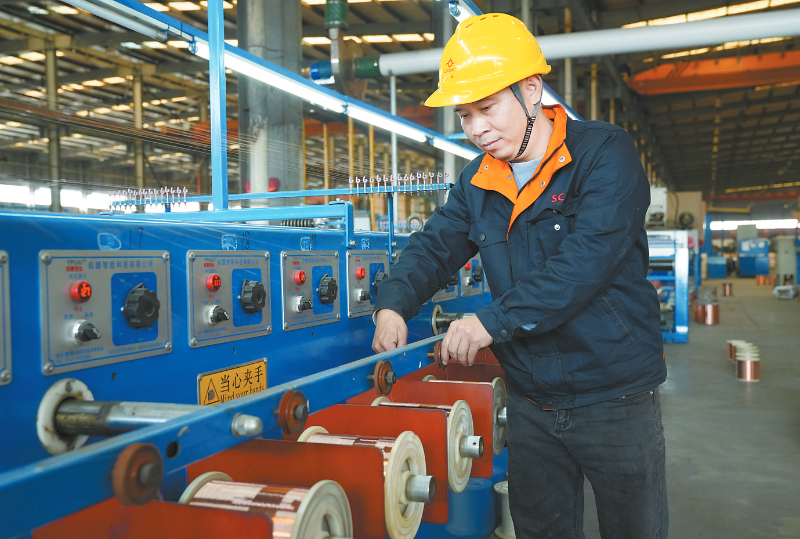 12月4日,在上杭太阳电缆有限公司的生产车间,只见各生产线正满负荷运转。该公司以各种中低压电线电缆、数据缆、同轴电缆、电源插头线为基础,重点发展船用电缆、特种电缆、海洋工程电缆、光电传输材料、微光电产品等高科技产品。近年来,公司着力提高产品的科技含量,通过年初结合市场调研情况,及时更改并研发更符合市场需求的产品,前三季度的产值同比增长了30%左右。 通讯员 杨国鑫 摄