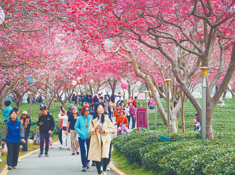 第二届海峡两岸农业交流大会暨漳平市第十四届樱花文化旅游节期间,游客正在赏樱。龙媒体记者 章宸睿 摄
