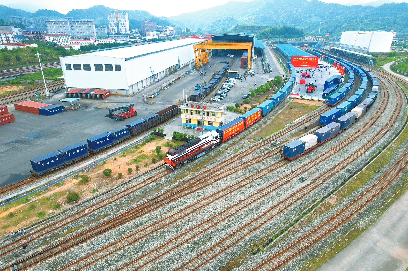 闽西革命老区开行的首趟中欧班列“红古田号”。龙媒体记者 傅长盛 摄